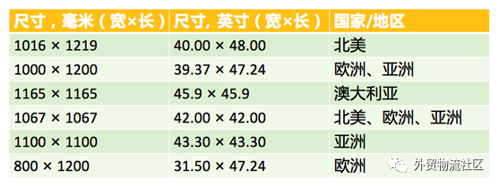 国际标准化组织(ISO)制定了六种托盘尺寸: