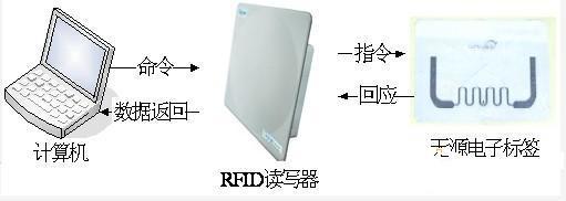 RFID系统基本组成如下图所示,包括电子标签、读写器、计算机系统三部分。